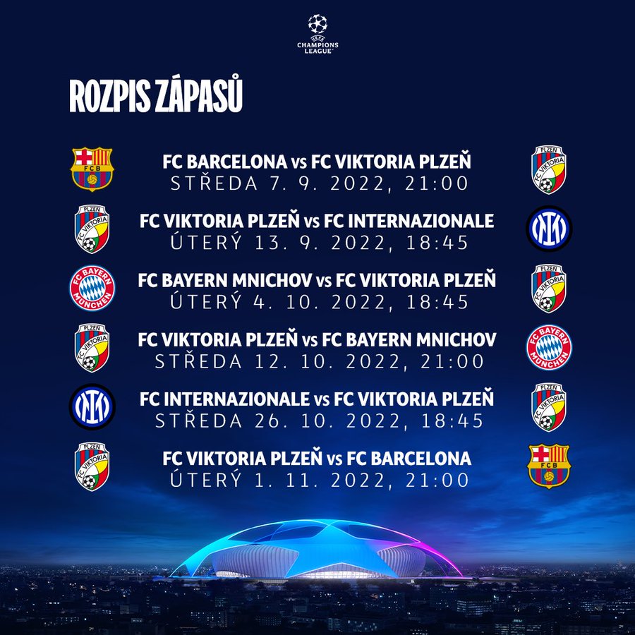 Ad Champions Tour announced Friday by AEG. How to watch Barcelona vs Viktoria Plzen on TV live stream online In the United States US. Viktoria Plzeň U19 View events.